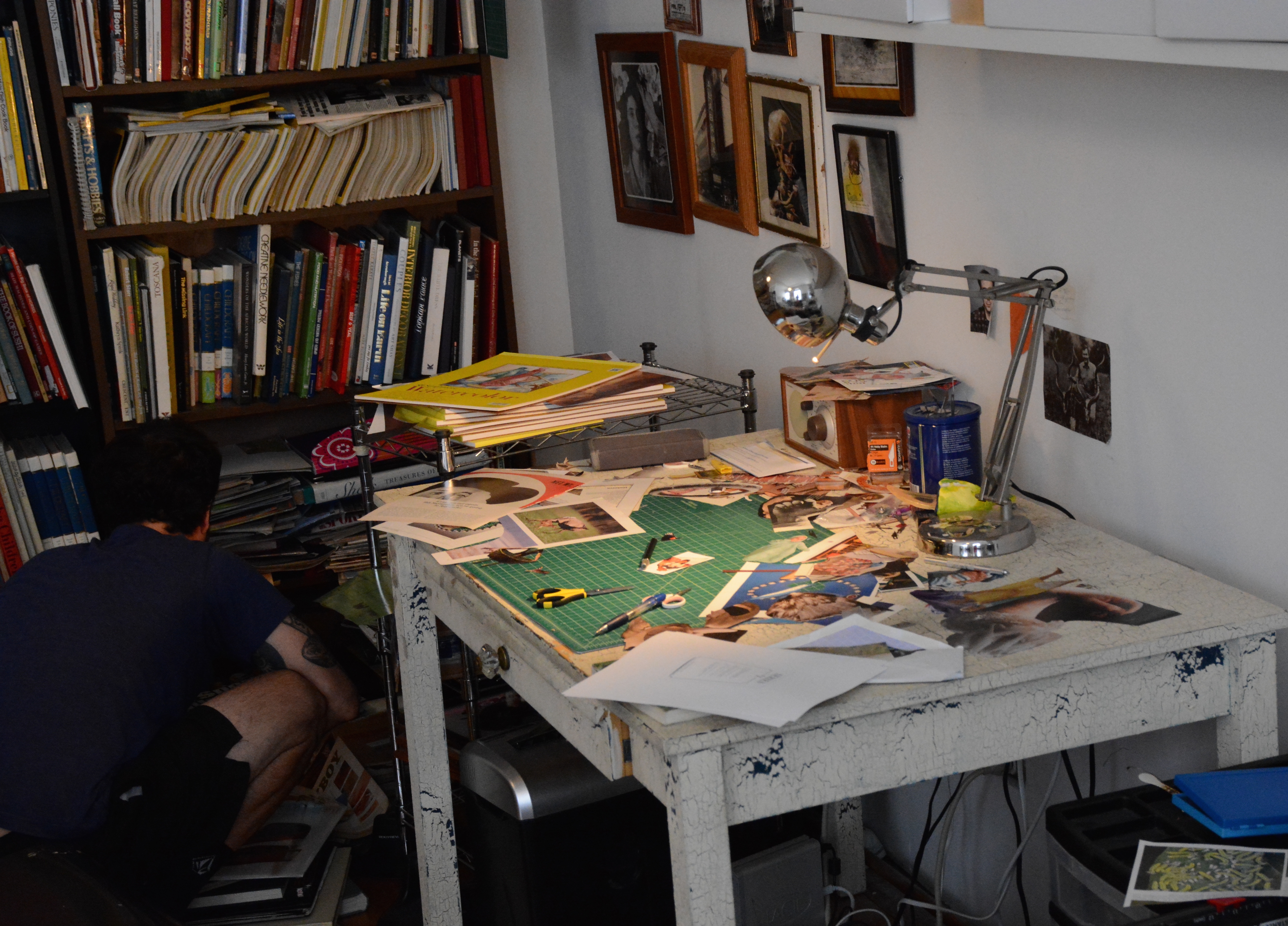 I couldn’t do this without being in the environment I’m in now. It took me about a month to adapt to my new environment. Butters and I now share our space and our lives with Jay and Rosie. We are always together… a vast difference from a year ago when we were separated by 3,000 miles. Now we are separated by a mere five or so feet while we work. I’m building a case for my research on Asian women and Jay is next to me, creating art from snippets of vintage magazines and books. In some ways, we are both collecting puzzle pieces to complete a whole picture.